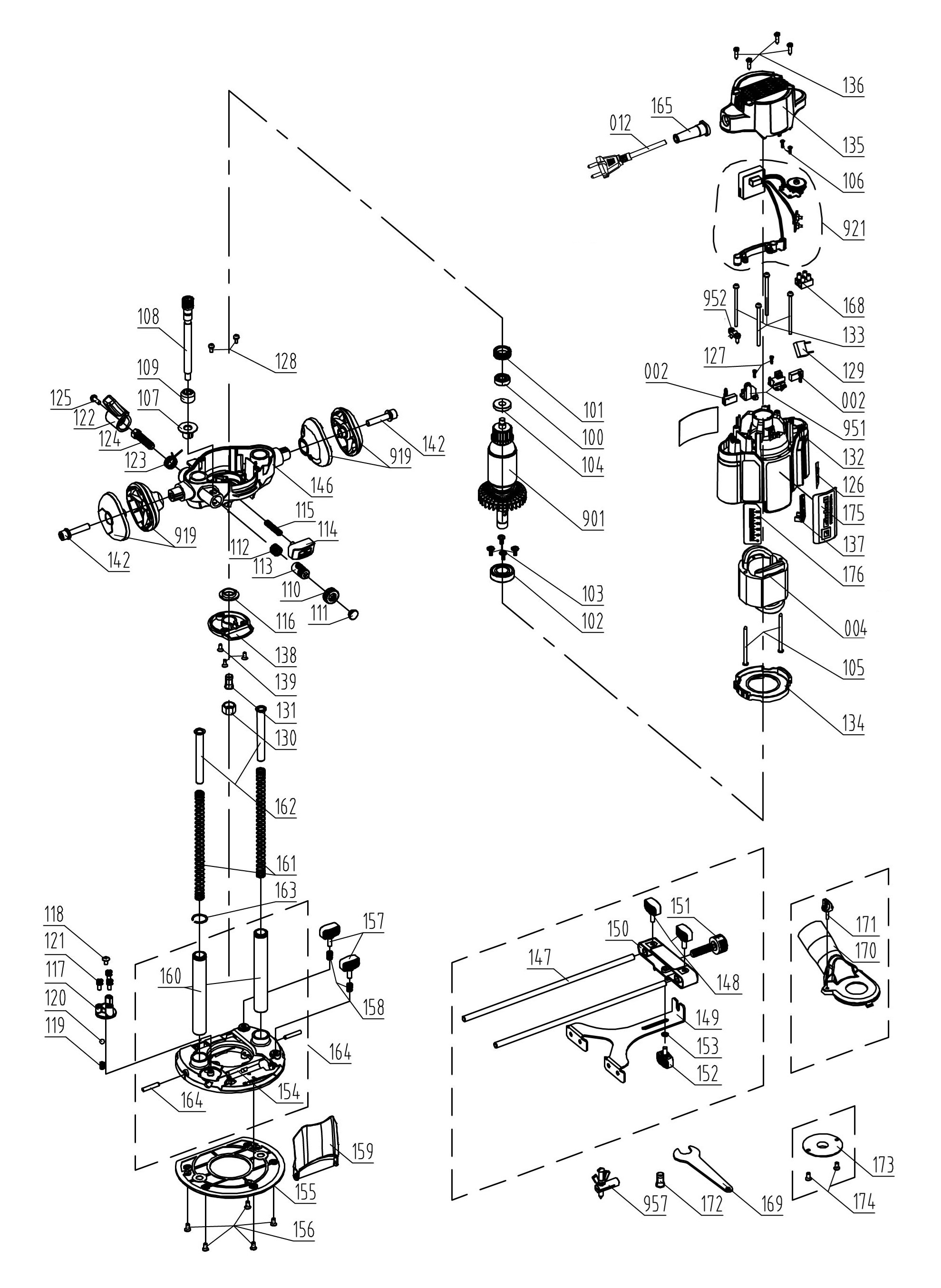 The Einhell Professional router TP-RO 1400 E is the powerful solution for precise routing work in the workshop and garage. With a powerful output of 1,400 watts, a maximum idle speed of 30,000 rpm and a generous stroke height of 55 mm, it offers everything you need for professional applications – even for hard materials and deep milling work. The continuous electronic speed control can be precisely adjusted to the respective material using the adjustment dial. The router is ideally equipped for precise work: The infinitely variable milling depth with additional fine adjustment enables precise immersion into the workpiece. The stable double-tube guide with solid guiding bars ensures stability and dimensionally accurate work, while depth adjustment is carried out using a multi-stage turret stop. The router is equipped with two collets (Ø 6 and 8 mm) for different attachments. The built-in spindle lock enables quick and easy tool changes. A plastic insert on the base plate protects sensitive workpieces from scratches and dirt. The ergonomic handle with soft grip and the optimised switch position for safe two-handed operation ensure safety and comfort when working. An LED light provides optimum visibility of the working area, while the foldable chip breaker cover protects against flying wood chips. The included extraction adapter enables clean working in combination with a compatible Einhell wet/dry vacuum cleaner. The scope of delivery includes a sturdy parallel guide, a compass tip, a copy sleeve, an open-end wrench and a compatible extraction adapter.